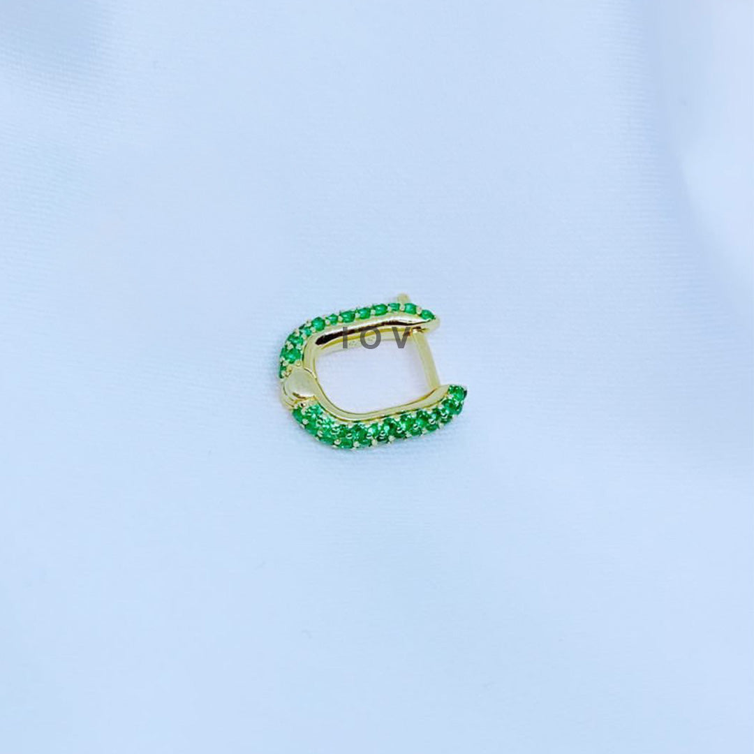 rectangular shape green earring plated with yellow gold.