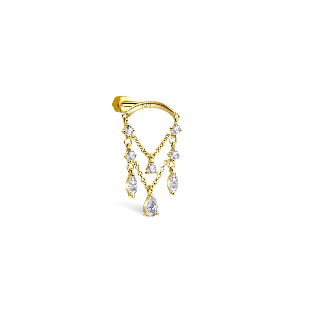 chandelier style flat back piercing.