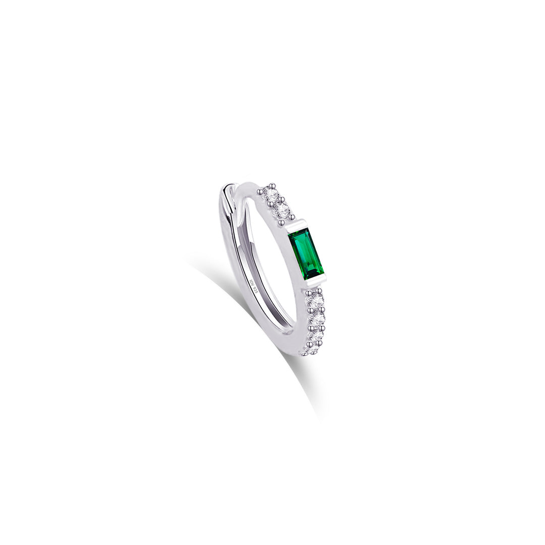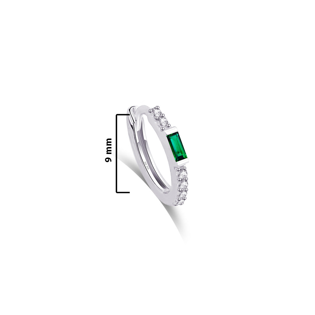9 mm inside diameter hoop with baguette emerald green color stone.