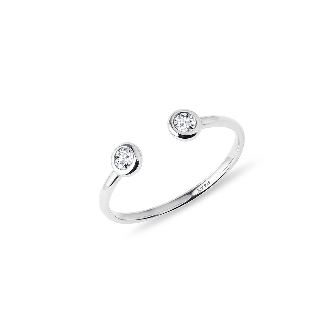 Open adjustable ring with two bezel stones.