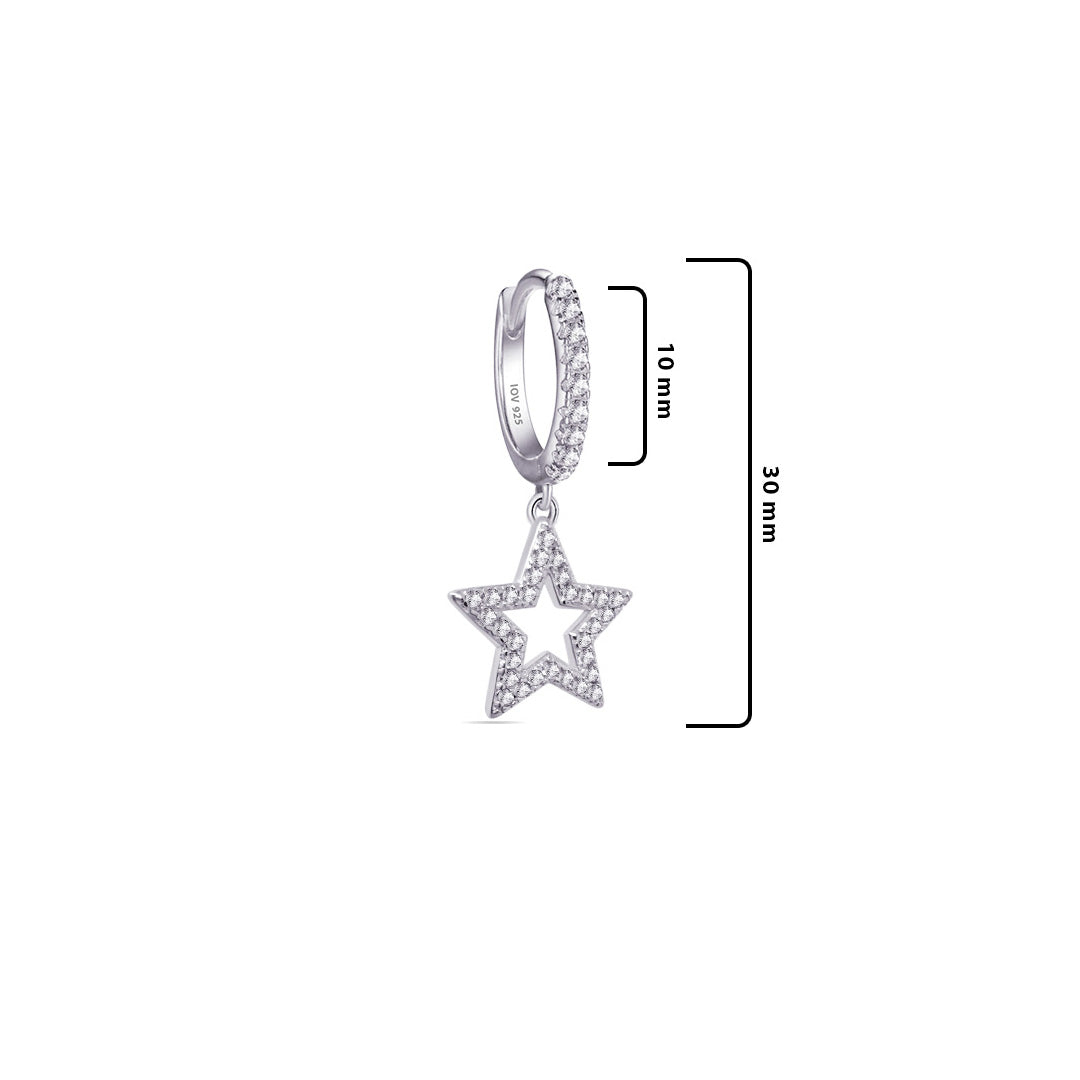 CZ hoops earrings with dangling star shape.