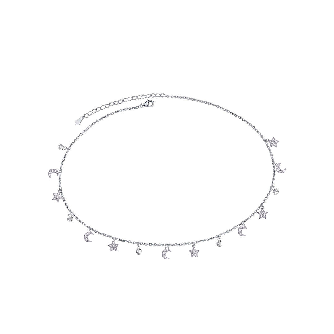 crecsents, stars and cz bezel setting choker.