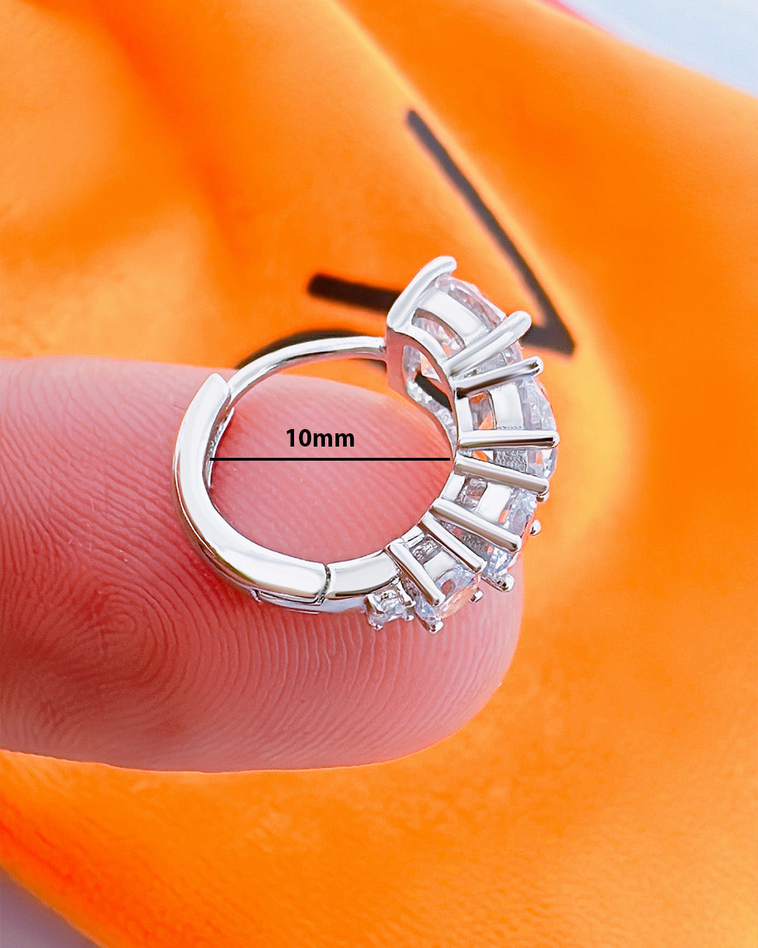 huggie hoop earring with graduated round CZ stones.