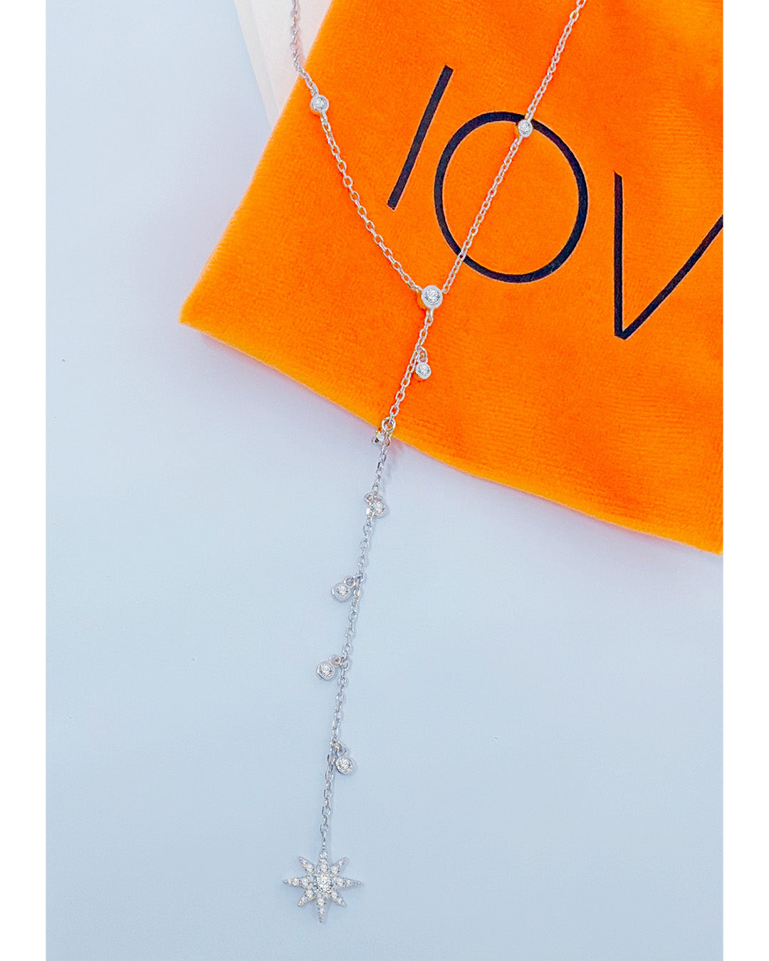Y shape necklace with dangling star and CZ in Bezel setting.