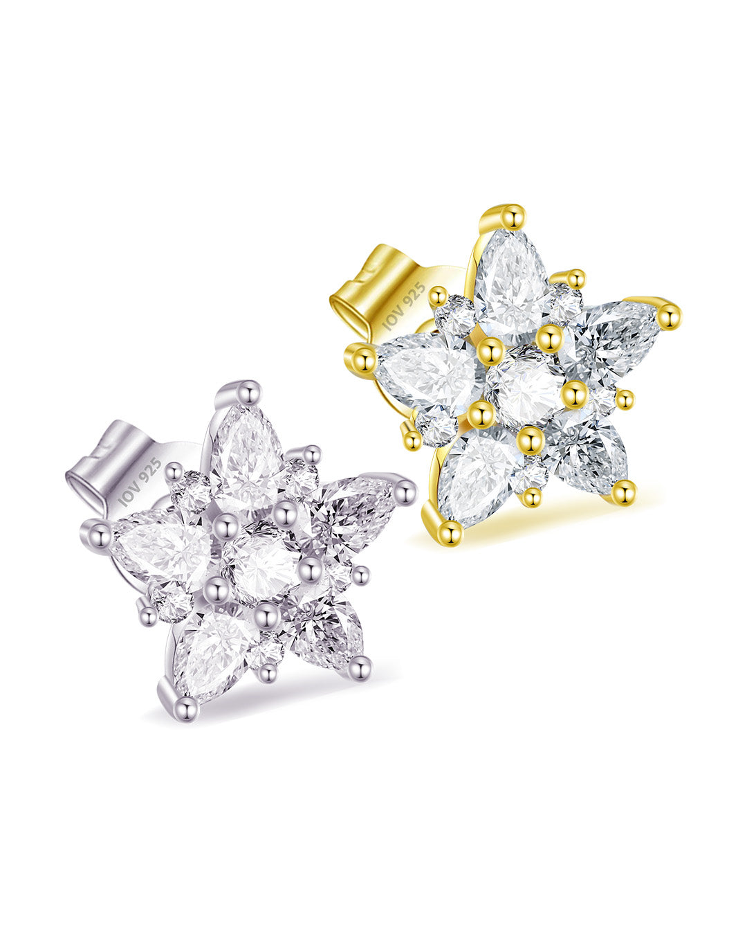 CZ cluster os pear and round stones stud earring.