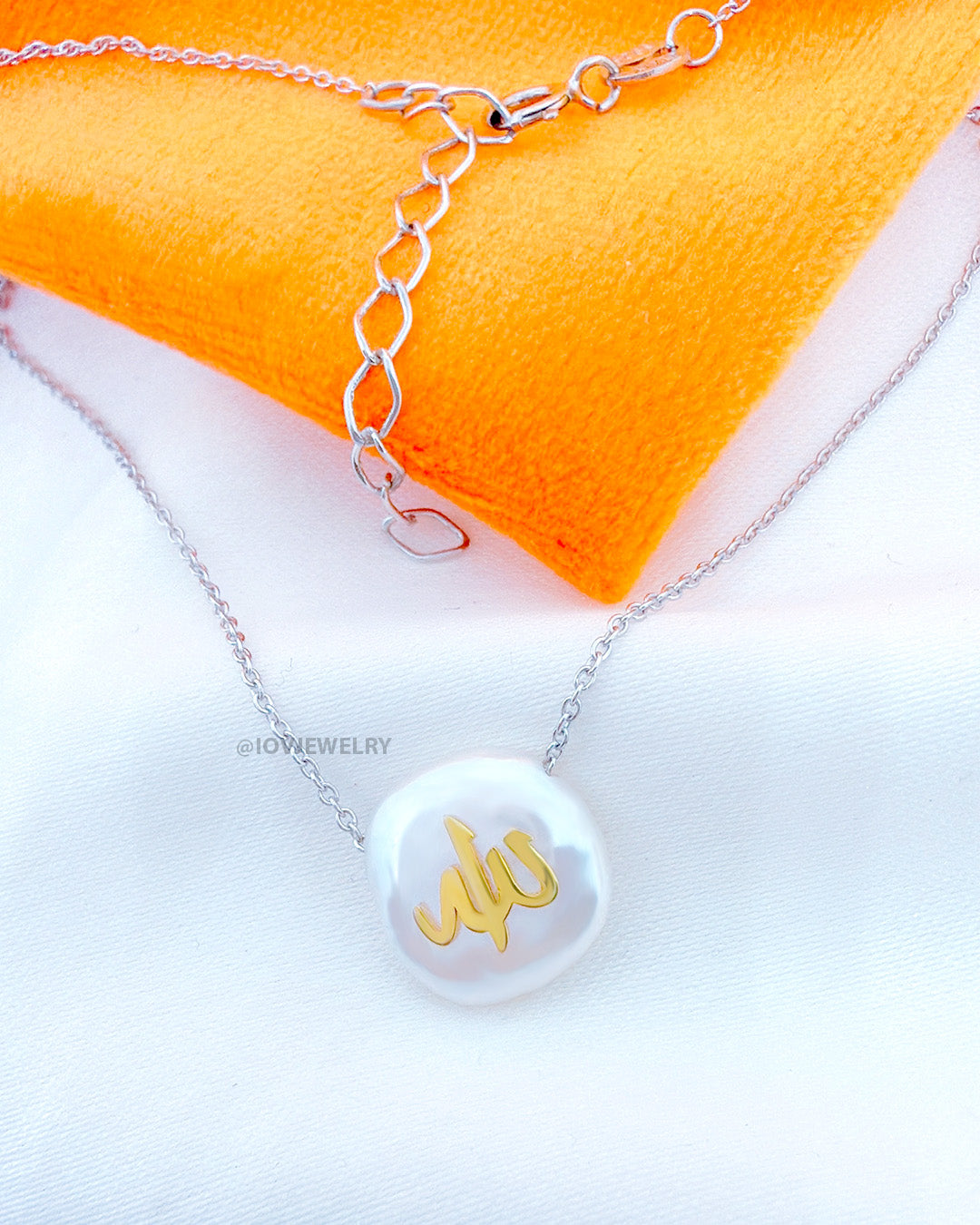 irregular mother of pearl necklace with the word "Allah"