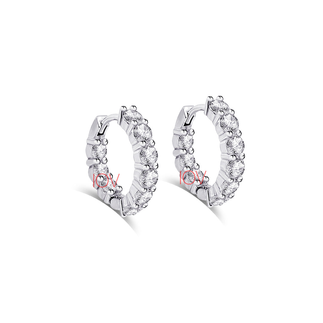 material : 925 sterling silver stones: zirconia These sterling silver hoop earrings are a classic and elegant addition to any outfit. The earrings are made of high-quality sterling silver that is rhodium plated to prevent tarnishing and give them a brilliant shine. The earrings feature a row of cubic zirconia stones that sparkle from both the outside and inside, creating a dazzling effect.