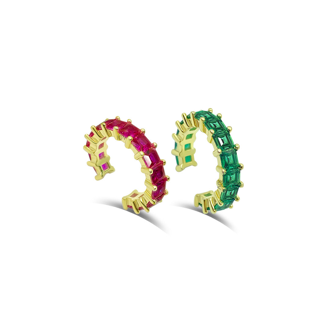 ruby and emerald color earcuffs.