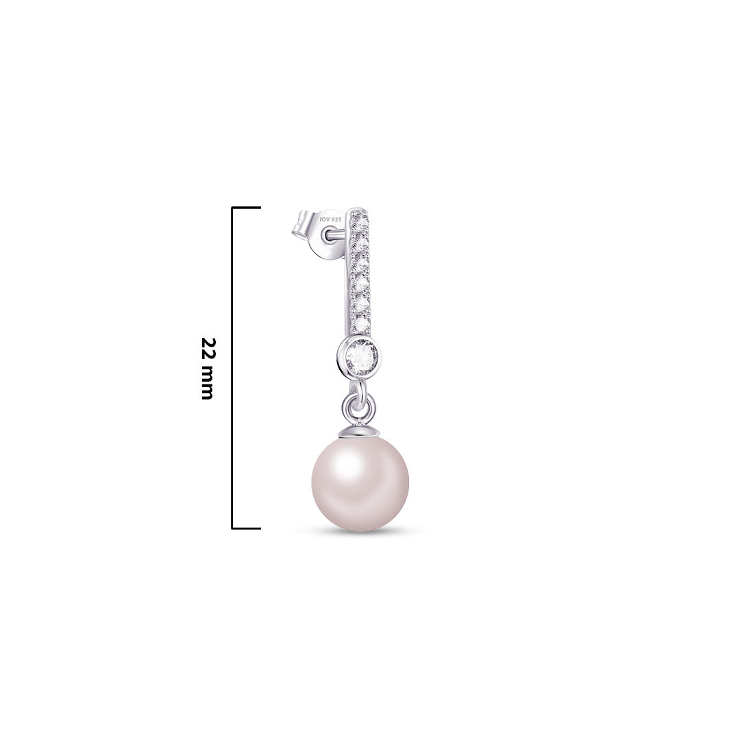 CZ bar with dangling pearl stud earring.